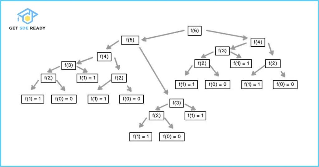 Recursion tree diagram for Fibonacci sequence, highlighting overlapping subproblems.